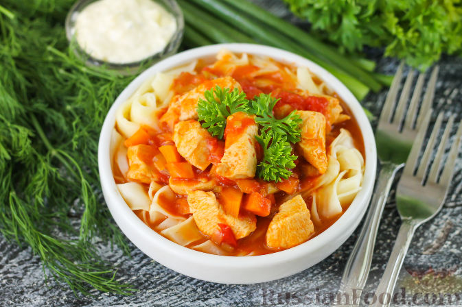 Рецепт очень вкусного блюда на обед — лагман с сочным куриным филе. Лагман с курицей покорит сердце любого мужчины. Съедая порцию этого вкусного блюда, любой захочет добавки, поэтому готовьте сразу несколько порций!